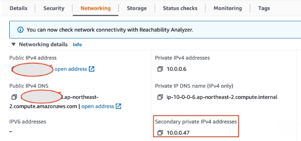EMR > 마스터노드 인스턴스 정보 > Networking (tab) > Secondary private IPv4 addresses