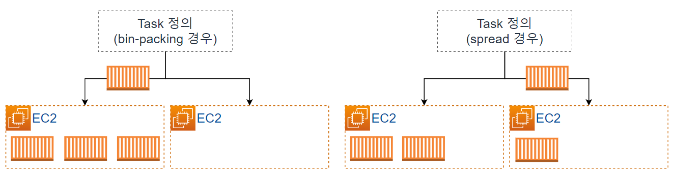 - Service (≒Deployment or Service) : Task 배치 전략 (bin-packing, spread, random)